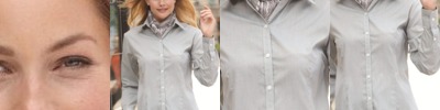 - Two pearlized buttons on an adjustable cuff with button-through sleeve placket