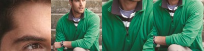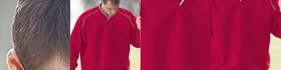 - Spandex reinforced rib V-neck collar and cuffs with tipping