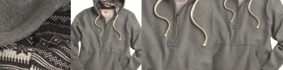 - Jersey-lined hood, flat drawcord, antique nickel eyelets and twill neck tape