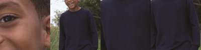 - 1x1 Rib collar, cuffs and relaxed bottom band
