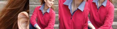 - Coverstitched neck, shoulders, armholes, cuffs and bottom band
