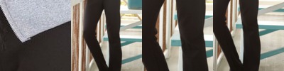 Slightly flared leg pants with a comfy encased elastic waistband and differentiating front and back rise.